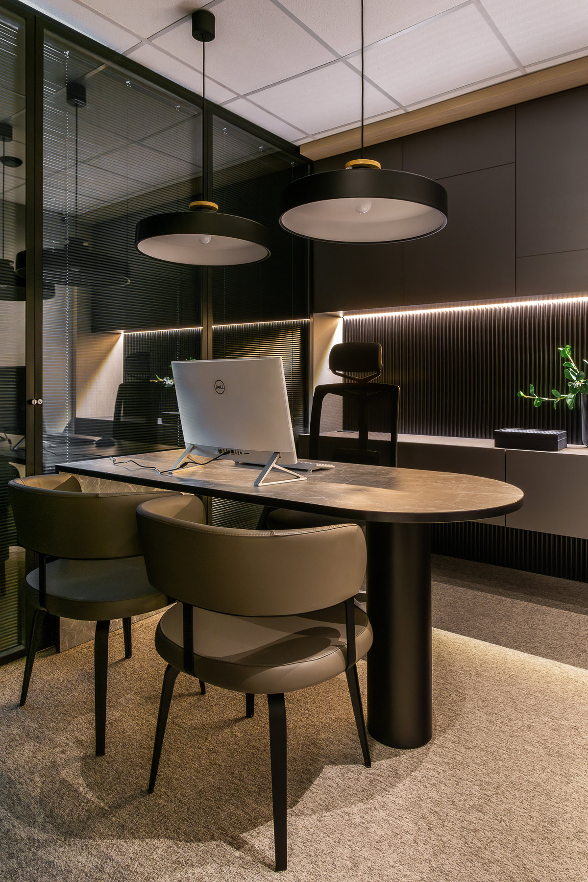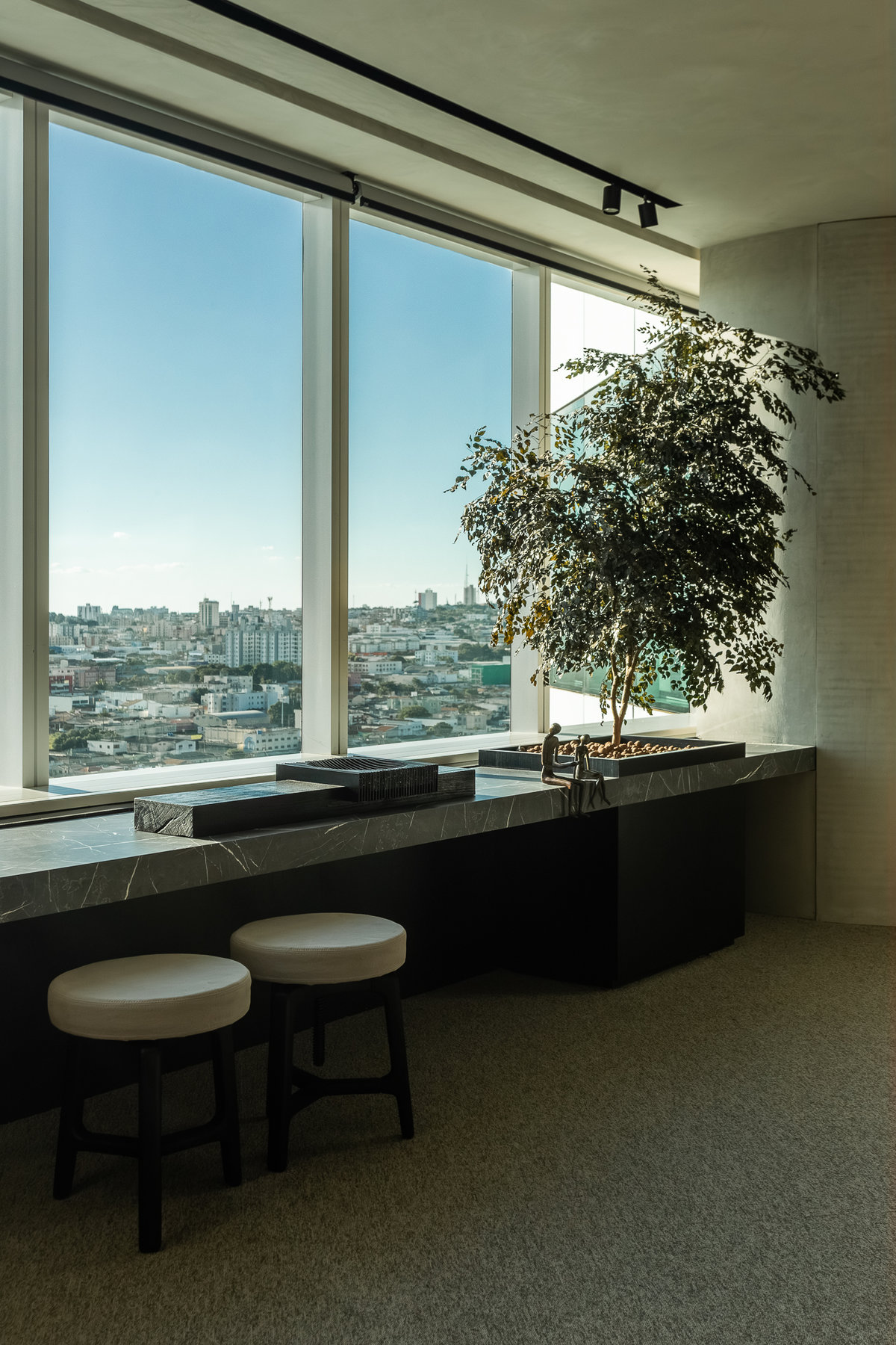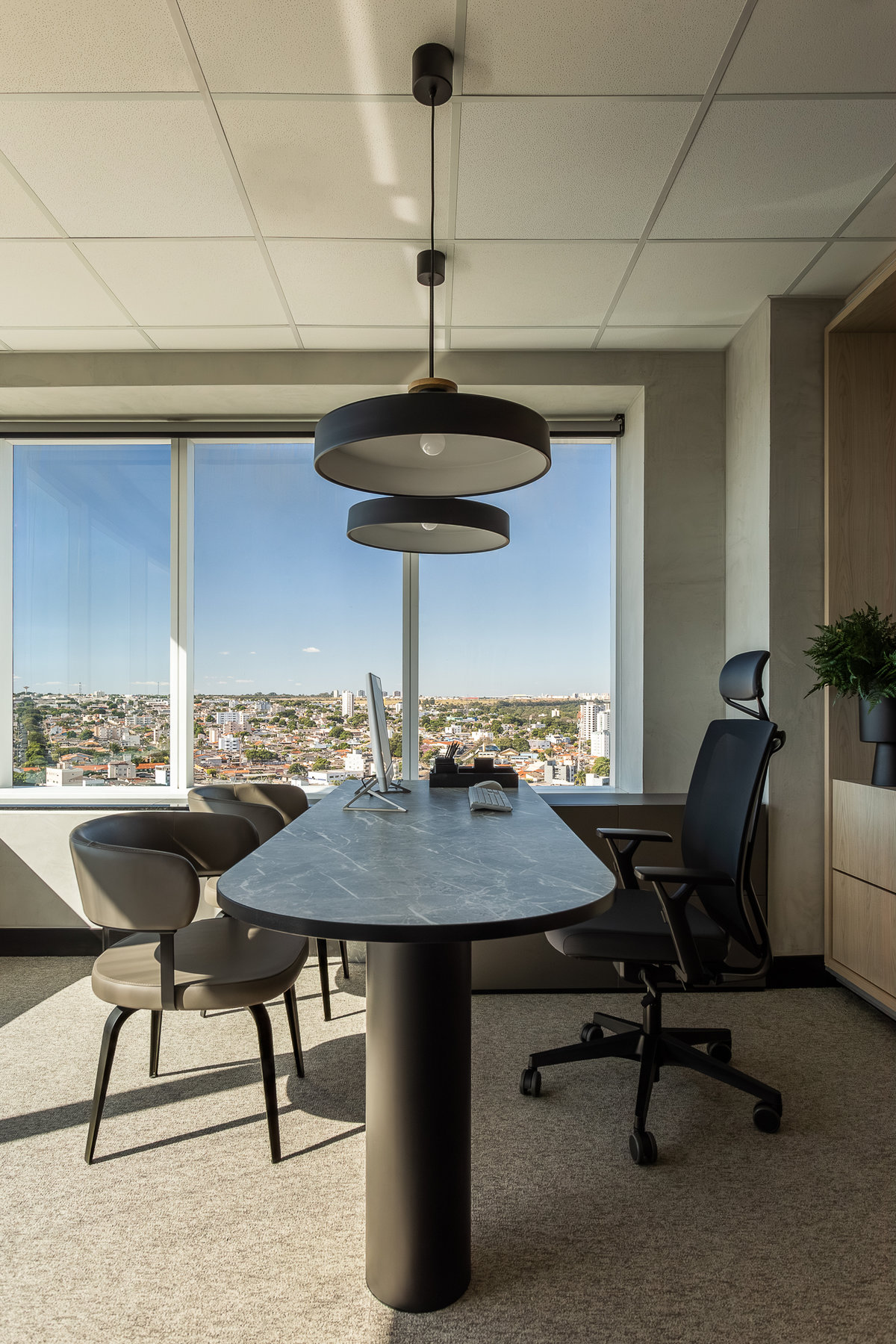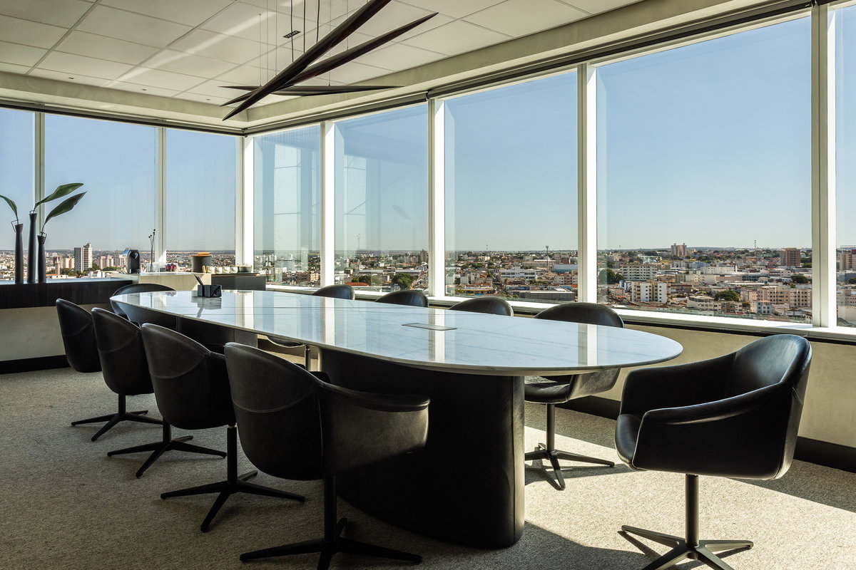 O projeto de interiores do escritório “Nego Véio”, do cantor Alexandre Pires, reflete elegância, personalidade e sofisticação. Com uma vista panorâmica deslumbrante da cidade, o espaço foi cuidadosamente planejado para unir funcionalidade e estética, traduzindo a identidade do artista em cada detalhe.