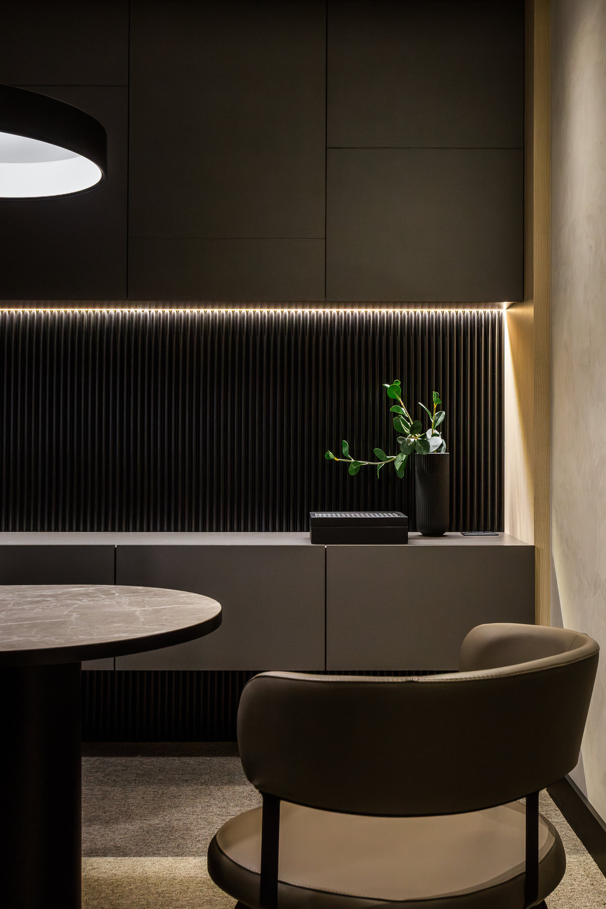 Mais que um escritório, o ambiente foi concebido como um espaço de inspiração, criação e encontros, alinhando o universo musical de Alexandre Pires a um design refinado e atemporal.